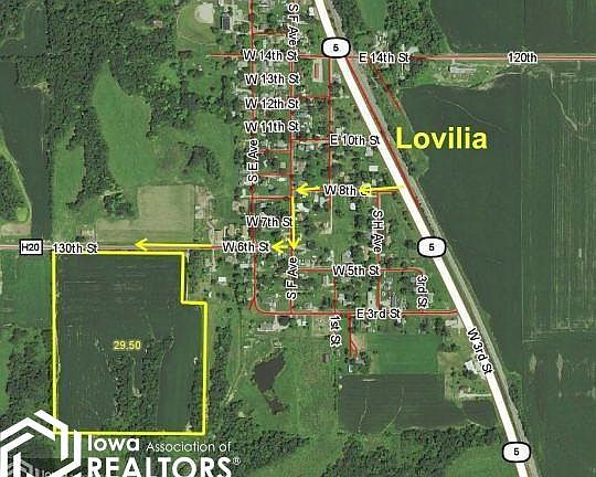 Small, good quality, Southern Iowa, Monroe County, highly tillable, crop farm at modest price offers add-on or hobby farm opportunities. Located on southwest edge of Lovilia, Iowa. 29.5 acres m/l with 24.2 acres used in corn-soybean rotation. CSR2 of 62.8 and CSR of 54.6 on the tillable acres. Level to gently rolling north edge of farm breaks slightly to two timbered scenic draws in south center that offer quality deer and turkey habitat. Neighboring larger tracts of timber to south and west assure plenty of wildlife will remain in the area. Modest deer & turkey habitat. Farm fenced with good electric; water & electric available at road, no outlet on farm.