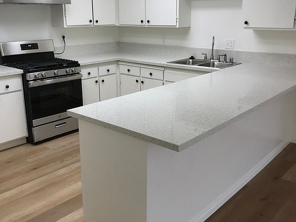 Downstairs corner 2bd gated community new paint and flooring open spacious living room and kitchen large quarts breakfast bar dishwasher disposal and gas stove New updated bathroom w/granite counter ASSIGNED GARAGE INCLUDED!! Community pool and on site laundry facility PLUS water trash and cable paid near everything.. freeways shopping and entertainment No pets No smoking/smoke free community