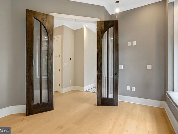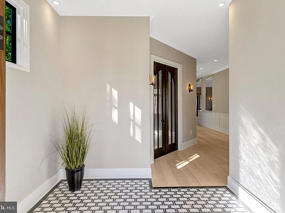 Located just 3 blocks from the Metro and across from Zitkala-Sa Park, this custom-built home offers over 5,000 square feet of beautifully designed living space. The open, contemporary floor plan feels inviting and bright, featuring 10-foot ceilings and wide-plank, hand-scraped light hardwood floors throughout the main and upper levels. The gourmet kitchen, finished in timeless white tones, enhances the home’s airy feel and flows seamlessly into the eat-in area with a built-in window seat and custom dining table that seats twelve. The family room centers around a striking custom marble fireplace, providing a comfortable space for relaxation and entertaining. A dining alcove, private study, mudroom with custom built-ins, and powder room complete the main level. Upstairs, the luxurious primary suite impresses with a cathedral ceiling, custom walk-in closet, and a stunning ensuite bath featuring a soaking tub, glass-enclosed shower, dual vanity, dedicated makeup counter, and private water closet. The upper level also includes two spacious bedrooms with a shared bath, a fourth bedroom with ensuite, and a conveniently located laundry room. The lower level offers a fifth bedroom, full bath, fully outfitted gym with mirrored wall and glass door, and a large recreation room featuring a built-in wine wall and wet bar with microwave and storage. Double doors lead to a walk-up exit and the fenced rear yard. Set on a .15-acre lot, the outdoor space includes a raised composite deck and a step-down to a flat, usable yard—perfect for entertaining or play.