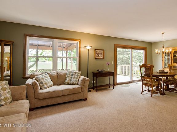 A very well cared for home by original owners in the Alta Vista subdivision of Algonquin. The home has 4 bedrooms, 3 full bathrooms, den, large family room with fireplace, bar, stools & refrigerator, and a 2+car garage. Dining room leads outside to a very large deck area. Elementary and middle schools plus playground, tennis & basketball courts, and pool are within walking distance. Back yard backs up to school open space.