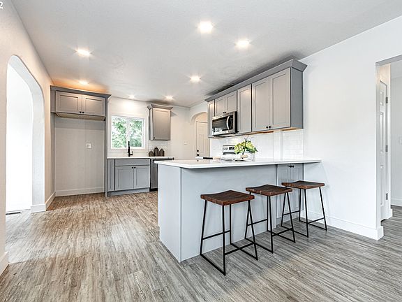 Charming curb appeal invites you in to the beautifully remodeled,light&bright, open concept home w/high end finishes&modern touches!Boasting impeccable details w/new hrd surface flring,striking kitch w/tile bksplsh,custom cabs,slab counters& appealing SS apps!So much new to love w/over 2400SF incl spacious bedrms,updated baths w/gorgeous tile,stylish lighting&plumbing fixtrs,fresh int/ext paint,sizeable+private bkyard which is enjoyed from the back deck&patio.2 bedrms on main plus bonus rm+shed! [Home Energy Score = 4. HES Report at https://rpt.greenbuildingregistry.com/hes/OR10206127]