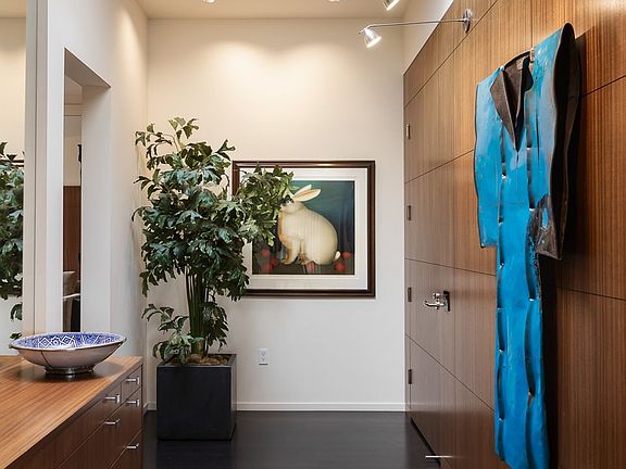 A private home like no other covering the top east half of the Crane Building & built to perfection in every detail. Modern luxury with vaulted ceilings, African Mahogany millwork, wide plank wood floors, and seamless transitions to the private terrace of 1,282 square feet wrapping the penthouse on 3 sides. Gourmet eat-in kitchen, built-ins & storage thru-out, the separate office could be 4th bedroom. A private oasis above the Pearl with mountain views. 2 big parking spaces & extra storage.