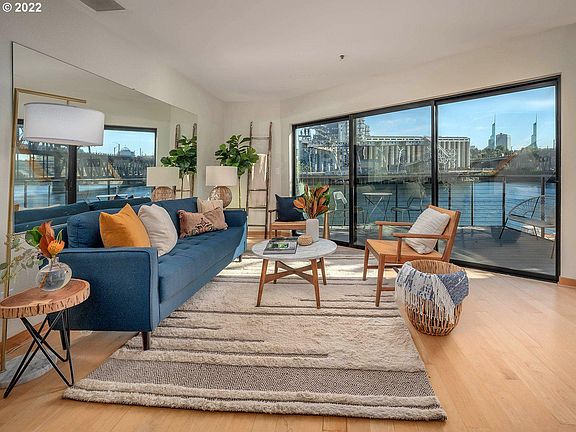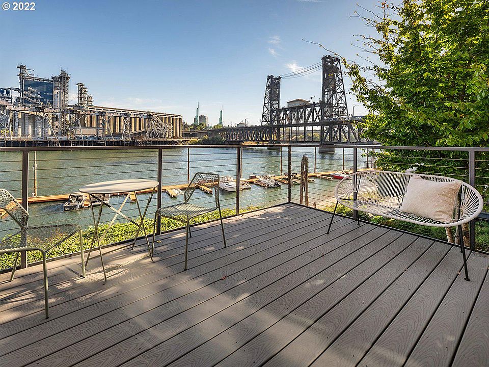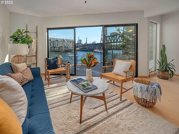 Stunning, unobstructed RIVER VIEWS on SE corner unit. TWO large decks. Watch wildlife like eagles & otters from your decks. Rare floorplan: 2bd/2ba. Wood flrs.Private waterfront access.Walk/run/bike along the esplanade + steps to MAX, local markets,restaurants. Community pool & hot tub. Perfect 2nd home:No rental cap(30-day Airbnb OK) Option to purchase your very own boat slip sold sep. Sellers enjoyed many days on their boat-conveniently parked right out front-in view. Lincoln HS!