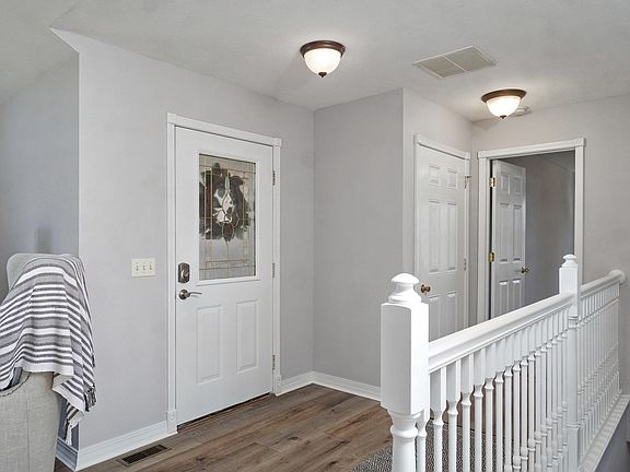 New flooring, fresh paint and new stainless-steel kitchen appliances have made this beautiful , walk-out basement home in popular Carriage Crossing neighborhood a must see. The upstairs has a split-bedroom floor plan and a vaulted ceiling in the living room. The kitchen boasts custom oak cabinets and a large dining area. Off the kitchen is a deck for family Barbeques and steps to a lower level. The Master bedroom has a tray ceiling , a bath with a tub/shower and a big walk-in closet . The other two bedrooms have walk-in closets and a large linen closet is across from the hall bath. The Basement includes two storage areas, an oversized laundry room, and a third full bath with jetted tub/shower. The rest of this amazing lower level is large and open , ready for a game table, a pool table , and a ping pong table and there is till room for a full entertainment center and couches. It is even plumbed for a future wet-bar/small kitchen. The yard of this updated home is unusually large. Part of it has a privacy fence and beyond that is even more yard space. Both areas are perfectly suited for children's play area, and a vegetable or flower garden. This spacious park like setting is a homeowners dream. Motivated seller will provide a one year home warranty for the buyerg.