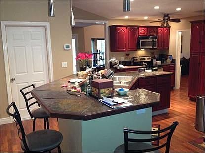 This is a really special home with lots of character and warmth. From the minute you walk through the front door and look through the chef's kitchen (Stainless appliances, slate countertops, all wood cabinets, huge island!) to the brick surrounded fireplace in the Family Room, you will feel like your search is over! This house also boasts a large living room/dining room with beautiful cherry laminate floors flowing into the kitchen. Around the corner is a bonus room/sports bar overlooking the free form pool and large private yard with the State Forest just behind the fence. Lovely master suite, 2 additional bedrooms, and move-in ready! Bring your family and pets and live the good life in Wekiwa Glen!
