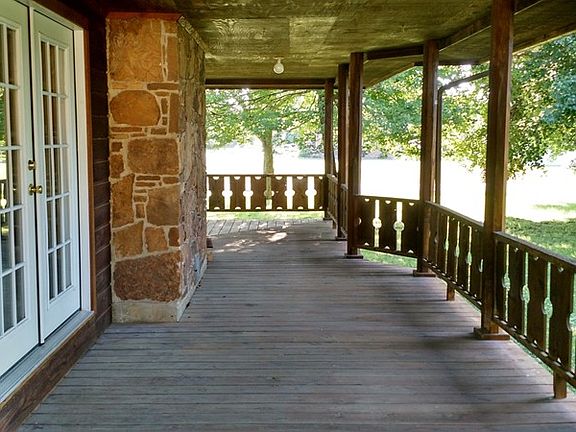 Striking for its design and location. Wood floors flow through the open family areas anchored by stone fireplace and accommodating three way access to extraordinary wrap around porch. Upstairs closets are a sight to behold - the storage is fabulous.
