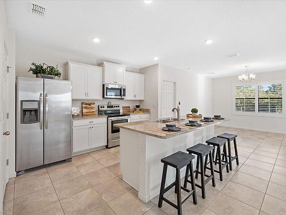 The residence features an open floor plan in durable concrete block, adorned with granite countertops and stainless steel appliances. Enjoy the stylish comfort of plantation shutters and the serenity of a preserved backdrop. With city water/sewer and a well for irrigation, this smart home also comes with a transferable home warranty until 2026. Revel in the community amenities with a low $175 quarterly HOA, providing access to a pool, clubhouse, tennis courts, exercise room, jogging trail, park, and shuffleboard. Live the Florida lifestyle surrounded by modern conveniences and natural beauty.