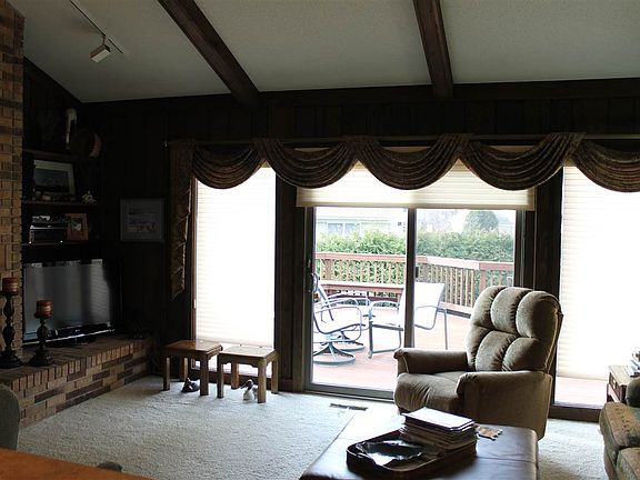 Immaculate Woodhurst Ranch with finished basement, beamed cathedral ceilings, 2 masonry fireplaces, newer Andersen windows, Large multi level deck with specialty planking & power awning, well equipped custom Kitchen with breakfast bar, Freshly painted exterior, Side load Garage with extra storage, Prewired for Generator, Well Landscaped with Irrigation, Well Maintained.