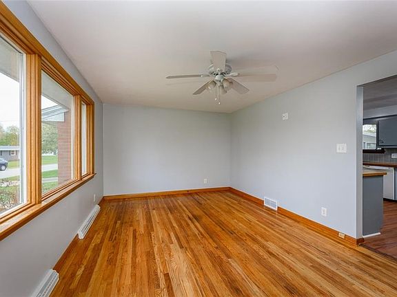 Conveniently located brick ranch with oak hardwood floor's and Anderson casement windows. There are laminate wood floors in the eat-in kitchen with gray painted cabinets, tile backsplash, and new countertops. The room right off the kitchen could be used as a dining room, family room, and even has hook ups if a first floor laundry is needed. There is a door just off this room to a huge privacy fenced backyard with solar lighting on the posts. The backyard has a fire pit and also a patio enclosure off of the back of the garage. The three bedrooms each have ceiling fans and hardwood floors. Remodeled full bath with tile floors, tile tub surround, and updated fixtures. Access to the basement is through the garage. Full basement with vented glass block windows, fresh dry lock paint, and tons of space! The driveway is wide enough for two cars and there is an attached one car garage. There is a double gate to the backyard that is wide enough to be able to pull a boat or a camper thru. Home is just a quick walk to Eastwood's Park. Awesome opportunity!