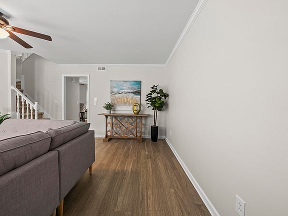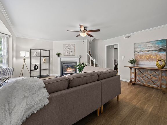 LOCATION-LOCATION-LOCATION!! Close to downtown Raleigh, downtown Cary, PNC Arena, NC State, the Fairgrounds & 440! End Unit Townhome with new fiber cement siding. The exterior & interior just freshly painted! Great LVP flooring, wood burning fireplace, crown molding & bay window. Kitchen with granite counters & stainless steel appliances. Refrigerator. Washer & Dryer included. Unfinished walk up attic - storage room off deck. Nice wooded backyard view!