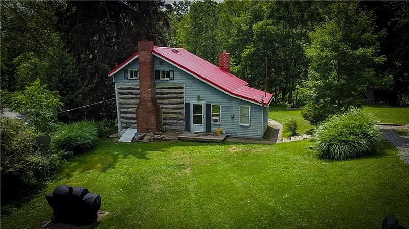 Historical 1800's Log Home. Charming 2 Bedroom 1 Full Bath on 4.14 secluded acres. Inside notice the original hardwood floors throughout. Spacious living room with Decorative Brick Fireplace. Eat-in Kitchen has plenty of Cabinetry and counter space. Convenient sliding glass door in the kitchen opens to a spacious rear yard with plenty of privacy. Bonus room off the kitchen can be used as a home office or walk-in pantry. The upper level features a Master bedroom, a Guest room, and an additional Bonus room. An oversized Detached garage with workshop is also an added feature. Newer Furnace, Well, Electrical Panel, and Water Treatment System are added features! This Home is located near the Washington Trail and is also near a Kayak launch on the Connoquenessing Creek!