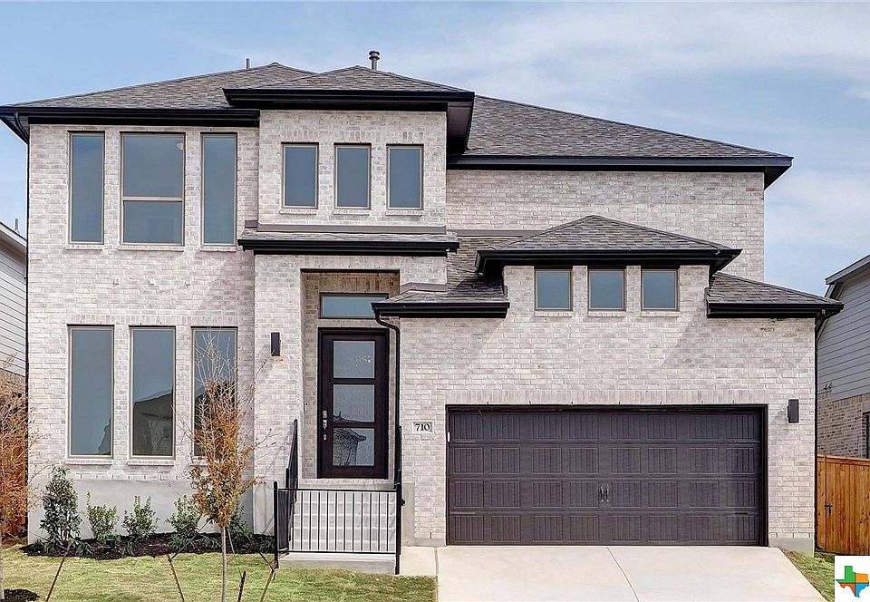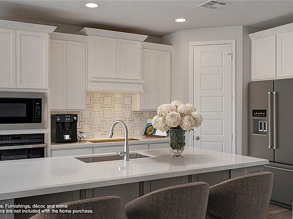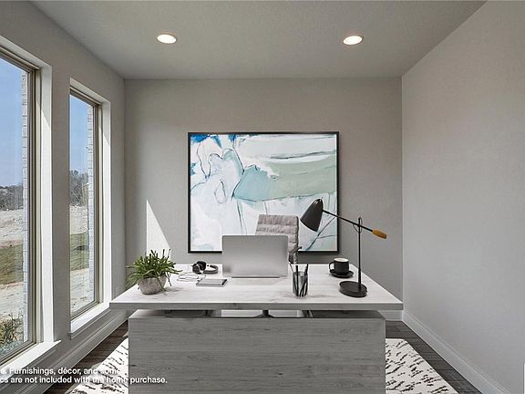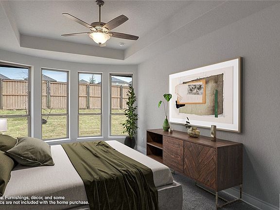 PERRY HOME NEW CONSTRUCTION! Home office with French doors set at two-story entry. Two-story family room with wall of windows opens to formal dining room, kitchen and morning area. Kitchen features corner walk-in pantry and generous island with built-in seating space. First-floor primary suite includes bedroom with 10-foot ceiling and curved wall of windows. Dual vanities, corner garden tub, separate glass-enclosed shower and large walk-in closet in primary bath. First-floor guest suite offers private bath Upstairs highlights a game room, media room and Hollywood bath. Three-car garage.