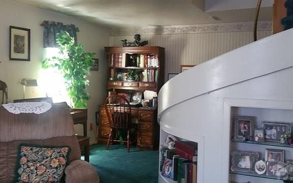 This house is wonderfully Unique! Make it a must see! This house offers a nice living area with a spiral staircase as the center focal point, with built in shelves and rounded walls. Nice sized 3 bedrooms. living room that is opened to the Dining Room and large Kitchen. This house also has updated windows and a Newer Roof and a garage that was converted into a shop area.