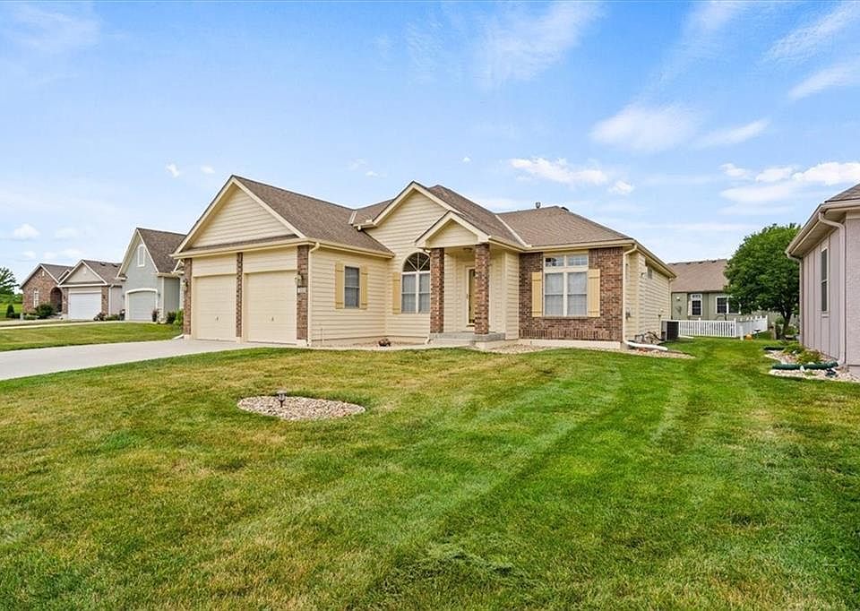 Beautifully maintained True Ranch with split bedroom design. 3 bedrooms/2 baths on the main level! Features include: crown molding & wide base trim throughout, Living Room with electric start gas fireplace, Dining Room with box vault ceiling leads into the Big Kitchen that boasts double ovens, tons of cabinets & counter tops, breakfast bar, island with cooktop and planning desk! (Hardwood floors under the vinyl floor in the Kitchen) All appliances are like new & were serviced yearly. Kitchen is open to the Family Room! Huge screened in porch! Large Main Suite and Bath that offers jetted tub & separate shower PLUS big walk-in closet. The lower level offers a Rec Room, 4th bedroom & full bath PLUS tons of storage! No mowing & snow removal worries here - that is covered by the HOA. Buyer & Buyer's Agent to verify all information including square footage, zoning, HOA, taxes & room sizes. Trustee is a licensed real estate agent in Missouri