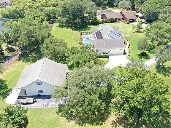 This stunning 2 story colonial style home is located at the end of a cul-de-sac on 1 acre. Surrounded by large mature oaks and beautifully landscaped, this park-like setting is a rare find. With easy access to I-75, minutes to UTC, and the beaches you can have the best of both worlds. Upon entering the home you will notice the cathedral ceilings and many windows that lend a bright and open feel throughout. The spacious family room features a gas fireplace and sliding glass doors that open to the screened solar heated pool. The kitchen contains solid wood cabinets, granite countertops, stainless steel appliances, a breakfast bar, and a breakfast nook that overlooks the pool. All four bedrooms are located downstairs. The master bedroom has a walk-in closet, french doors that step out to the pool area, and en suite bathroom with dual sinks and separate shower and tub. Upstairs is a bonus room that could be an office or a playroom. In addition to the attached 2 car garage, the property includes a separate garage/workshop. This building is a drive-through structure with 3 large automatic garage doors, wired with 220 electric and a stand-up attic. There is so much here, it has to be seen to be believed. Call today for an appointment to see this treasure in the heart of Sarasota.