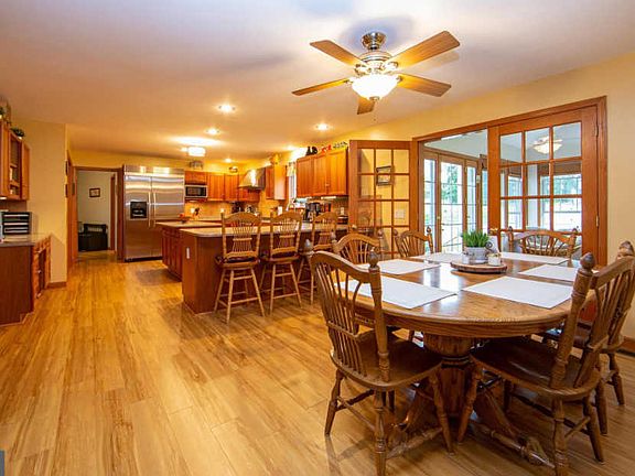 - Kitchen Island, Window Treatments, Pantry, Recessed Lighting, Walk-In Closet(s), Other, Dining Area, Eat-in Kitchen, Open Floorplan, Wood Stove, Wood Floors, Attic, Upgraded Countertops, Combination Kitchen/Dining