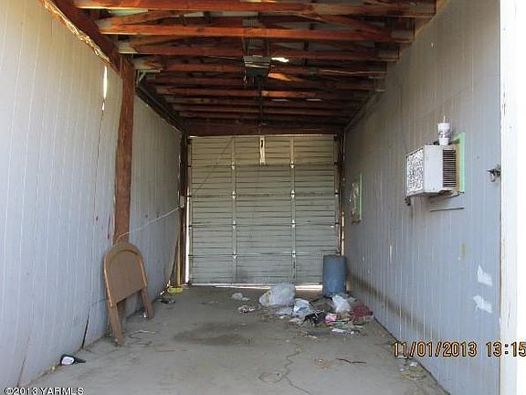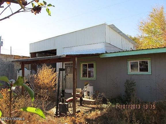 2 bedroom w/large kitchen eating area, utility room. It has a tall RV type garage and large shop/storage and storage shed. An extra room in the basement that has a closet. Newer type roof. Tile in bathroom. Front porch. Large living room. Needs work. CASH ONLY.
