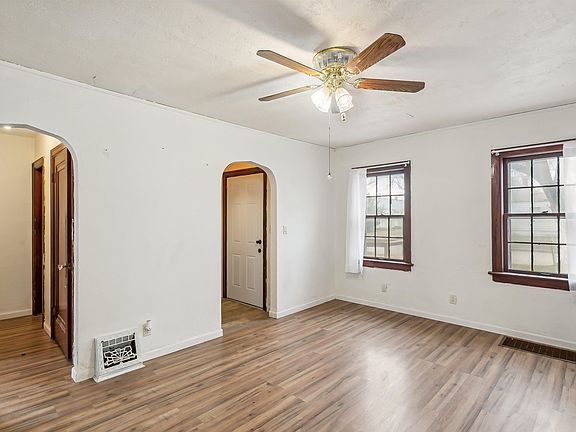 Welcome to a unique opportunity nestled on the east side of town—a charming 2-bedroom, 1-bathroom brick house with a detached garage is brimming with untapped potential. This 2-bedroom, 1-bathroom home was recently upgraded with new plumbing, water heater, furnace, electrical panel, and LVP flooring. It most recently got new countertop installed as well as concrete work around the home and foundation repair in the basement. Boasting distinctive character with arched doorways, a cozy gas fireplace, and a covered patio for privacy and relaxation, this property holds tremendous promise for those seeking the chance to create their dream space. In the unfinished basement you will find laundry hookups and an abundant storage space. The proximity to shopping centers and restaurants adds further convenience, making this home an ideal blend of comfort, potential, and accessibility. Don't miss out—seize this opportunity to make this charming house your home sweet home! This home is being sold as is where is.