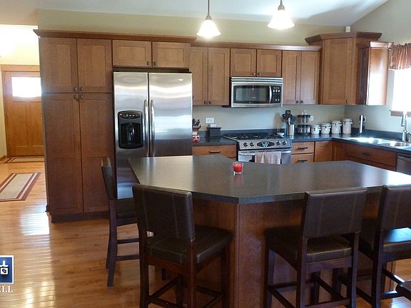 WELCOME HOME! Open concept custom ranch located on a quiet dead end street! Tastefully painted & custom touches throughout! Huge great room, kitchen is perfect for entertaining with a BIG island! Hardwood floors, SS appliances, covered patio, fire pit, fenced yard, storage shed. Large 3 car garage w/radiant heat floors. Basement is somewhat finished w/rough in for future bath. Move right in~all the work is done for you!