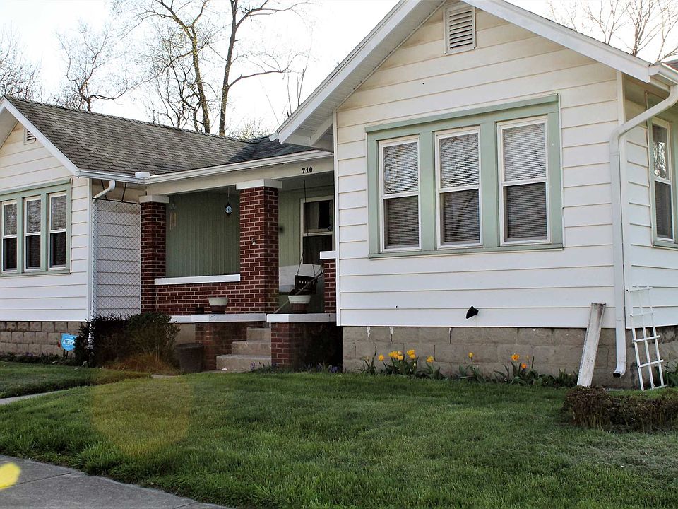 Bungalow with covered front porch and large, secluded back yard. Kitchen completely updated five years ago, including new cabinets, countertop and appliances, with extra-large pantry closet. Newer carpet in the large living room connected to sun room/family room. Three-bedroom, one bath with utility room connected to basement stairs. Large two-car garage with additional, separate storage.