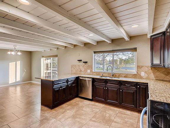 SPACIOUS sprawling ranch home close to Belmar. Completely updated with newer kitchen and granite counters, stainless steel appliances. All bathrooms updated with designer finishes. Nothing to do, move right in! Two wood burning fireplaces with exterior wood shoot. Bring your horse or farm animals, zoned for one horse or smaller animals and chickens. Small outbuilding for hay storage and the animals is separate from fenced yard with sprinkler system. Separate basement entrance. Oversized detached two car garage with ample off street parking and room for RV's. Near Belmar and Adenbrook Park with arena.