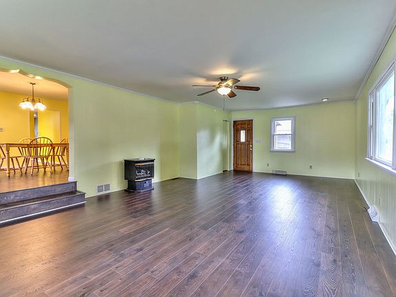 Imagine crisp fall evenings watching panoramic sunsets from the oversized back yard. Laminate flooring throughout most of the home with some just recently installed. Such a bright and light home with the feeling of warmth and sunshine. Living room, separate dining room and a nice sized kitchen make up the living quarters. Two bedrooms on the first floor with and updated bath. The third bedroom is up, but could be used for a rec room, or perhaps that home office so needed during these times. A true favorite for the seller has been the 24' by 32' detached garage. Fenced yard and garden boxes just waiting for spring plantings. Come see all that this spacious and well designed home has to offer. Guiding You Home!