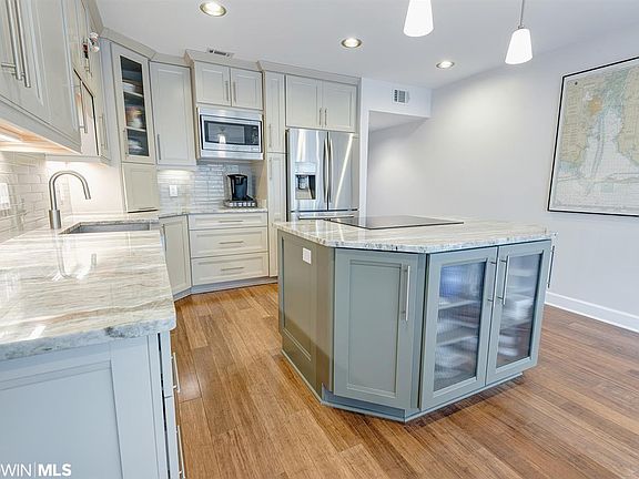 Have you ever dreamt of low-maintenance, waterfront living? This townhouse offers 2 BR, 2.5 BA w/ bonus room offers gorgeous, water views on each of the three floors. As you enter, you are greeted by a wonderful foyer and bonus room making this space versatile to your needs. On the second level, note the hardwood floors and large windows flooding the home with natural light! The gourmet kitchen features all custom painted cabinetry, granite counter tops, stainless apron sink, and stainless steel appliances. Upstairs, you will find two well-appointed master suites, each with renovated bathrooms and abundant storage, along with another balcony featuring stunning bay views. Located in the sought after Magnolia Beach Townhomes, you are at the perfect location to enjoy the quintessential Fairhope lifestyle, all while enjoying tranquility on Mobile Bay. Schedule your showing today!