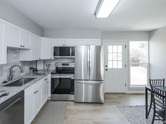 laminate flooring, and plush carpeting. The heart of the home is a dazzling new kitchen with shaker style