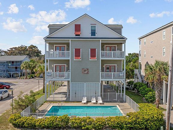 Discover the ideal investment property! Boasting seven bedrooms and six bathrooms, this second-row beachfront property features a pool and is elevated for stunning views. The building comprises just two units, with each occupying half of the structure. On offer is Unit A. The main level is outfitted with a contemporary kitchen, complete with stainless steel appliances, granite countertops, a breakfast bar, and ample cabinetry. It also includes a generous living room, a dining space with balcony access overlooking the pool, and two well-appointed bedrooms, each with its own bathroom. At the top of the stairs on the second floor, there's a sitting area adjacent to the Master Suite. This suite boasts French doors leading to a private balcony, a spacious walk-in closet, and a bathroom with a double sink vanity and a shower-tub combo. The second floor also includes three additional bedrooms and two full bathrooms. On the third floor, an expansive bonus room comes equipped with foosball, TVs, a dartboard, electronic games, and plenty of seating for gaming. Another bedroom and full bathroom are available on this level. Outdoors, there's a 6'x 32' shared unheated pool and a charcoal grill for barbecues. Unit A provides parking for six vehicles. South Villa's prime location is within walking distance of convenience stores, restaurants, the OD Pavilion Arcade/Amusement Park, and a short drive from Main St entertainment and dining in North Myrtle Beach, Barefoot Landing, Tanger Outlets, and premier golf courses.