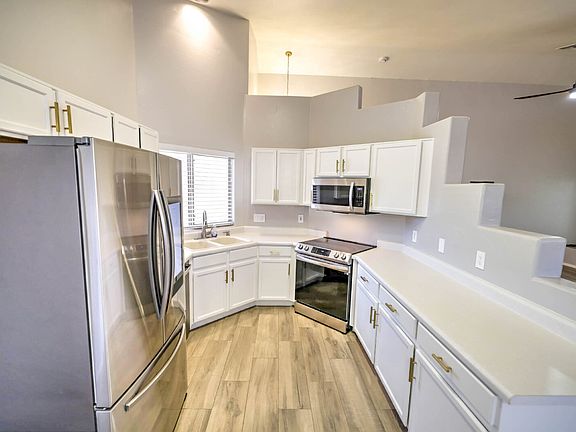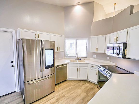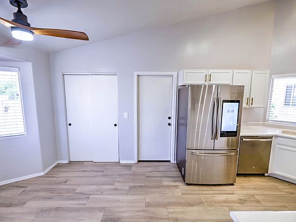 Welcome to this charming and private three-bedroom home in the Hidden Vista neighborhood on Tucson's Eastside. The entire home is equipped with smart features, including stainless steel appliances, smart switches, and smart thermostat and EV Chargepoint 240 volt J1772 connector charging station in the garage. The bathrooms feature quartz countertops, updated light fixtures, and the primary bathroom has also been updated with a large walk-in shower. The living room features a vaulted ceiling with wood plank-style tiles throughout, while the backyard features mature vegetation encircling a lawn of artificial grass round out this home. The neighborhood offers close proximity to amenities like grocery stores, restaurants, and entertainment while also providing easy access to enjoy Tucson's desert landscape with a leisurely walk to Case Park or a short drive to Saguaro National Park. Come and see this home to appreciate all it has to offer. Small dogs ok with additional deposit limit 2 max 40 lbs each.