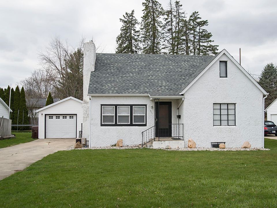There are three entrances to this very cute home, located by a school, parks, athletic fields and the hospital! Although the build date is 1940, the effective date is 1965, when the home was completely remodeled with period features to create a bemusing charm. There are 3 bedrooms, 2 full baths, a roomy living room, dining room and kitchen, which includes a separate entrance. The loft-style bedroom upstairs has an adjoining full bath and nursery/ bonus room. The house is compact but the rooms don't feel cramped. The full basement is clean and dry, with it's own entrance. A covered porch, back patio, and large yard create comfortable outdoor enjoyment. And, yes... there's a detached garage and long driveway to accommodate multiple vehicles. Age of roof 7 years on house, 3 years on garage.