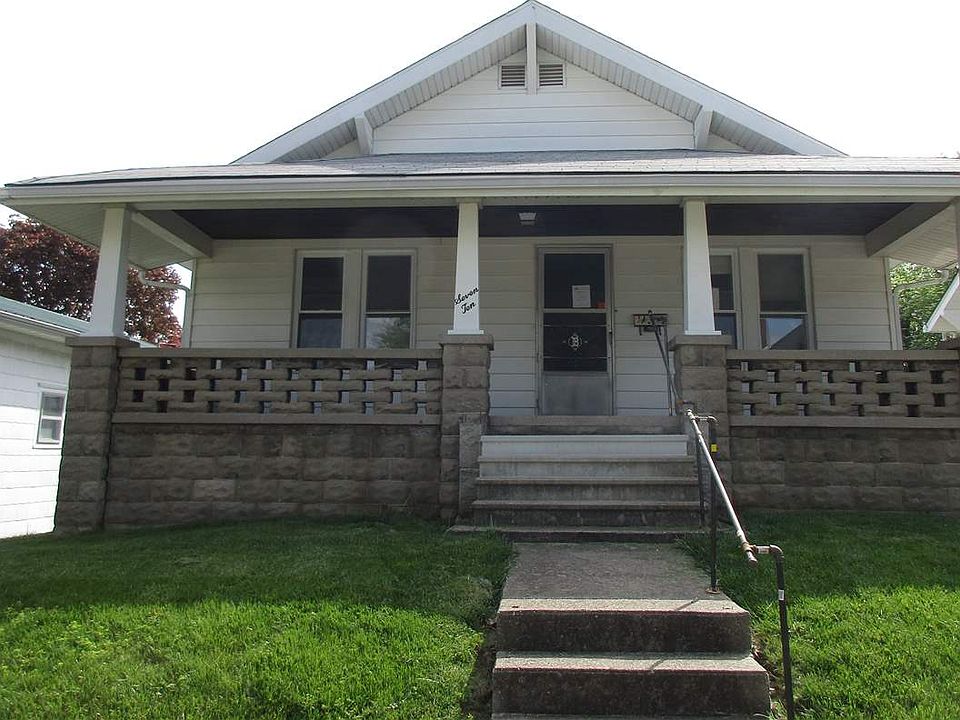 Bungalow style home with 2 bedrooms and 1 full bathroom, living room, dining room, kitchen, full unfinished basement and enclosed back porch. Covered front porch and 2 car detached garage.