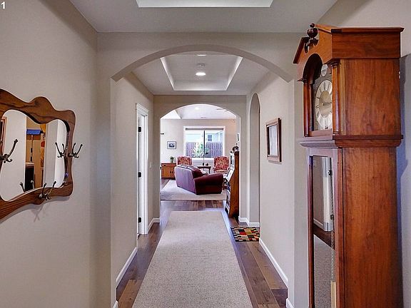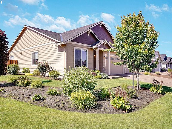 Desirable Sublimity! Many upgrades & finishing touches in this beautiful1-level home. Great-rm floorplan w/vaulted ceiling & corner gas fireplace. Gorgeous wide-plank lam wood floors. Kitch has gas range, granite counters & huge island for gathering. You'll love the outside w/the oversized covered patio & large fenced backyard w/sep gated entrance for access to build your own shop! Thoughtfully laid out w/paved/gravel walkways to everywhere. Fruit trees & berries satisfy that home-grown need!