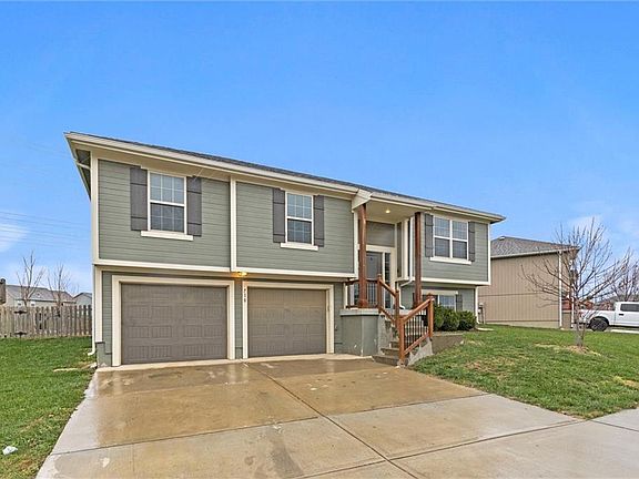 Welcome to this stunning split-entry home featuring fresh new carpet and paint throughout! Situated in a prime location within the highly sought-after Raymore-Peculiar School District, this home offers convenience and style. The spacious kitchen boasts plenty of counter space, a large island, and opens to the great room with a cozy fireplace. The dining area has a sliding door that leads out to the deck, perfect for outdoor entertaining. The master suite includes a walk-in closet and a double vanity in the ensuite bathroom. You'll appreciate the laundry room conveniently located on the bedroom level. The finished basement features a large rec room and a half bath, providing additional living space. Enjoy a fenced yard and easy access to shopping and major highways.