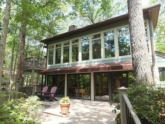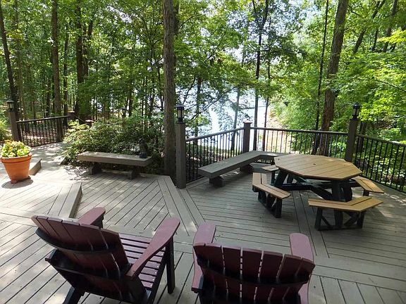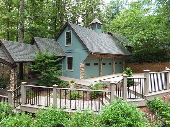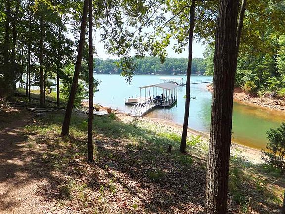 Wooded craftsman's delight in this private Hartwell lakefront estate! 3.4 acres with over 240' water frontage less than 5 minutes from Exit 4 on I-85! Completely and meticulously renovated in 2014, this home is a lakefront showplace. A truly spacious floorplan, this 3BR/3BA home offers each bedroom in separate areas with full bath access- perfect for entertaining friends and family! Large kitchen with quartz countertops and large wooden bar overlooking lower level den and sunroom with full granite wet bar adjoining large deck/patio area overlooking the deep water Tugaloo River section of the lake. Upper level "sleeping porch" with lake view, along with large stone fireplace den and master suite. Enjoy those lakefront evenings from the master bedroom suite boasting large fireplace, 8'x12' office loft with spiral staircase overlook. Propane fueled Generac home generator installed in 2014 is great for weather emergencies! Covered custom 26'x27' dock with boat lift installed in 2014. Professionally installed landscaping surrounds this home with multi-zone lake fed irrigation providing lush perennial flower bed with boulder accents and stone walk way. Detached 3 car garage with large bonus room has covered and lit breezeway to home. Separate 18'x15' unfinished studio building could be used for extra storage or finished into a guest quarters or office space. Low maintenance exterior with Hardie plank siding and Gutter Helmet gutters. Very gentle slope to water with no grass to maintain, if you are looking for home to relax and enjoy Hartwell "lake life", look no further!