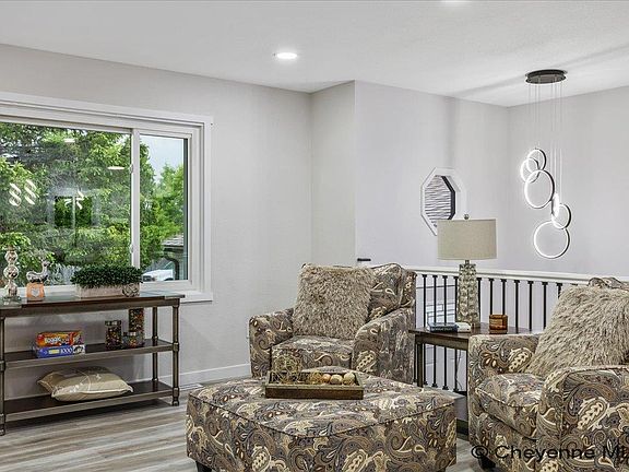Welcome to 710 Shaun Avenue—a stunning bi-level home that has been thoughtfully renovated from top to bottom. Located in desirable north Cheyenne, this home features a bright and modern interior with crisp white cabinetry, gorgeous quartz countertops, and a spacious kitchen island with a coordinating soft gray base. The dining area offers direct access to the back deck—the perfect spot to enjoy your morning coffee or relax at the end of the day. The upper level includes three nicely sized bedrooms, including a spacious primary suite with a walk-in closet and private ensuite bath. A full guest bathroom completes the upper level. Downstairs, the expansive garden-level basement is filled with natural light and offers a large family room with a cozy wood-burning fireplace. Two additional bedrooms, a third bathroom, tons of storage under the stairs, and a spacious laundry room with direct access to the oversized two-car garage complete the lower level. Step outside to a beautifully landscaped yard with a fully automated sprinkler system, fenced backyard, and dedicated dog run. Central air conditioning adds year-round comfort to this move-in-ready home.