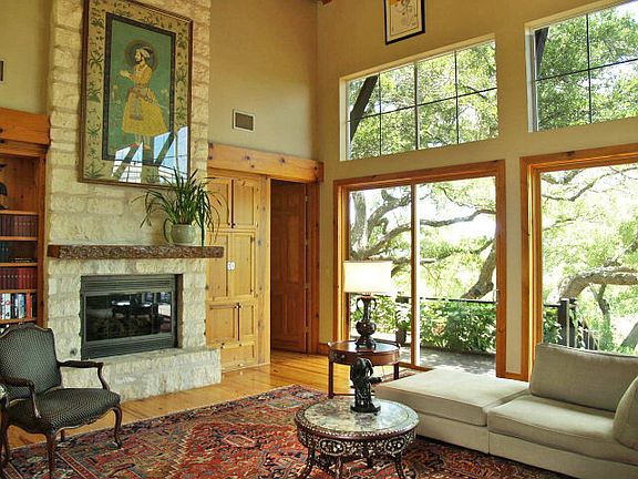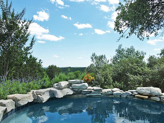 Tuscan-inspired hilltop paradise on 7+ acres w/in-ground pool, quaint guest cottage & garage apartment. 2/2 main home features a 23 ft soaring ceiling w/exposed beams, huge stone fireplace, 8' tall glass doors & wide-plank pine floors. The back deck looks out to a beautiful hill country view w/Oaks, Elms & native grasses. Property is perimeter-fenced w/a spring-fed creek that runs most of the year. It's no surprise this home was featured in a Better Homes & Gardens article titled “Living the Good Lifeâ€.