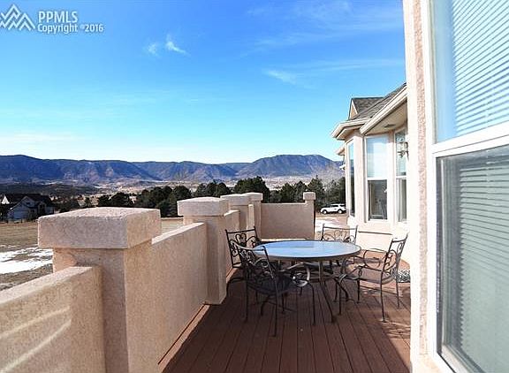 Immaculate custom home on 5 acres, with a great sense of space and natural light inside and out, comfort and elegance. Main Level living, walk-outs to a patio and an upper deck, breath taking views from every window, beautiful architectural details through out. Great for entertaining, or quiet relaxation. Features quick hot water, central vacuum system, and so much more. The basement is simply WOW. The family room is 30 x 54 feet!!!! with 2 fireplaces, walk-out to the lower deck and 2 more bedrooms. The 5 acres of land only add to the sense of space and privacy to this house. Utilize the land or simply enjoy the space and unobstructed views. Super convenient location: close to I-25, 20 min to downtown Colorado Springs, 30 min to Denver, shopping, restaurants, etc. What a gem, rare find, must see.