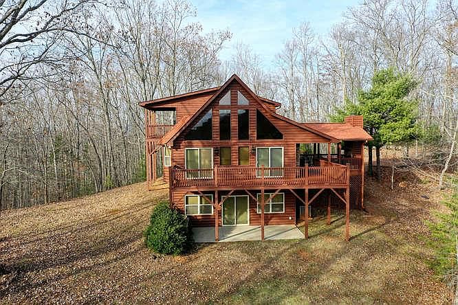 Outstanding long-range mountain VIEWS from each level of this private, end of road, FURNISHED 3 bedroom 3 bath log home with outdoor wood-burning fireplace on covered deck! When you are not fully enjoying the outdoor spaces of this home, relax in the comfort of the open custom kitchen, dining space and living area with gas log fireplace. Choose to make your master on the main level or opt for the loft with a private balcony. The lower level increases your gathering space with a family room, BA, 3rd BR or use as bonus room. There is plenty of parking as well...which you will need as friends and family will surely be visiting!