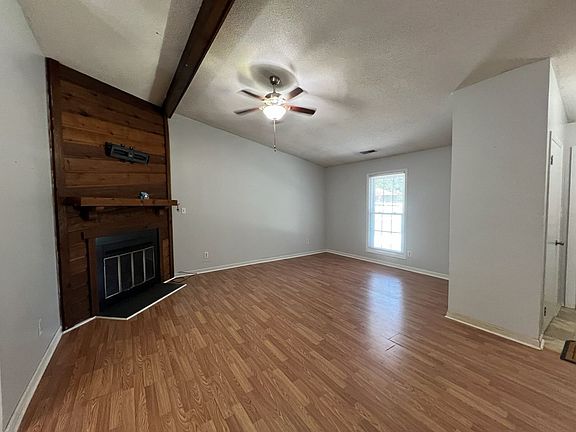 Step inside to find newly installed flooring throughout, a spacious living room with exposed ceiling beams, and a beautiful reclaimed wood fireplaceperfect for cozy evenings. Out back, unwind on the deck while enjoying the peaceful wooded backyard, offering added privacy and a serene atmosphere.