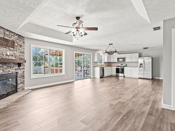 Come and see this updated 3 bed/2bath home in The Briars! Featuring a view of the neighborhood lake and no backyard neighbors, enjoy NEW paint, flooring, counters, kitchen cabinets, doors, and trim! Open concept living room/kitchen with a stone fireplace, abundant natural light, and tray ceiling. Kitchen offers stainless appliances (all included), new white cabinets, and wood counters. Primary bedroom features an en-suite bathroom with shower/tub combo and walk-in closet. 2 more bedrooms share a full hall bathroom. Off the kitchen is access to the covered deck. Backyard is fully privacy fenced. Located only 2 minutes to Clever High School and 10 minutes to Nixa. Clever Schools. Call to schedule a tour today!