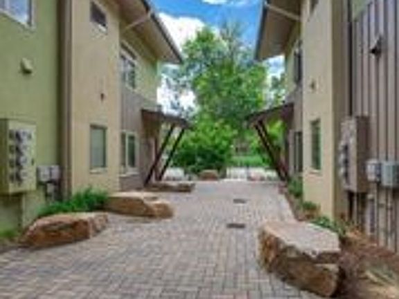 This incredible complex features only five exclusive units. Enjoy stunning views of the mountains, the CSU campus, and the historic rooflines of Fort Collins Old Town. Each residence is designed with large windows and patios. Inside, you'll find beautiful plank flooring in the kitchen and living areas. Custom tile, cabinetry, and lighting in all three full bathrooms. The layout includes separated bedrooms with no shared walls, each equipped with spacious walk-in closets. Additional amenities include a full-size front-load washer and dryer, along with a locked underground storage unit for skis, snowboards, canoes, and more!