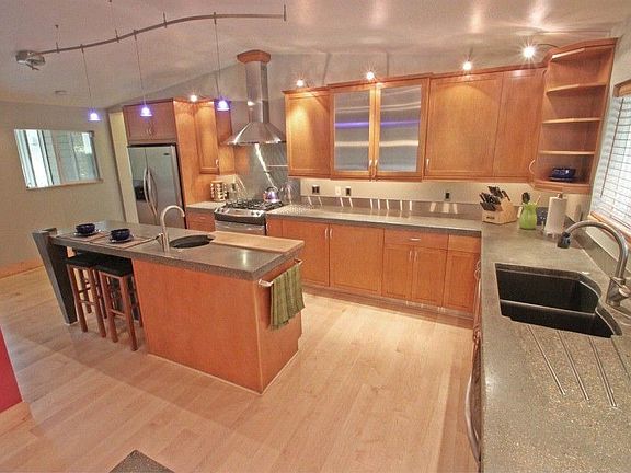 Gorgeous home on coveted Ranch Road. This home was originally built in 1959, but it has been meticulously redesigned and completely remodeled to bring you the perfect blend of style, function and flow. The kitchen has been elegantly designed and loaded with modern features. Poured in place concrete counter tops with granite sill sinks, above and below cabinet lighting, Frigidaire stainless steel gas cook top range and hood, great work space with prep counter and prep sink. It opens to a spacious dining area and family room perfect for todays style of living. The entertainment/great room has radiant heated concrete floors, a fully functioning bar complete with kegerator, full height ceiling and walls of windows for lots of natural light. Upstairs you'll find a secluded master suit and the open loft, perfect for the home office. Just off the loft is the secluded sun deck designed with privacy in mind. The balance of the main level has 3 additional bedrooms including one guest suite with private bath adorned with Indonesian black onyx tile. The vanity is an authentic antique Indonesian Teak wood alter with a solid carved granite stone sink. And don't miss the shop, the perfect space for an art studio, ski tuning and/or bike repair or just about anything else. It also has a closet and counts as a 5th bedroom with its own entrance. All of this on a lot that's just under a half acre backing up to a year-round creek and just a hop and skip to Highlands Elementary School.