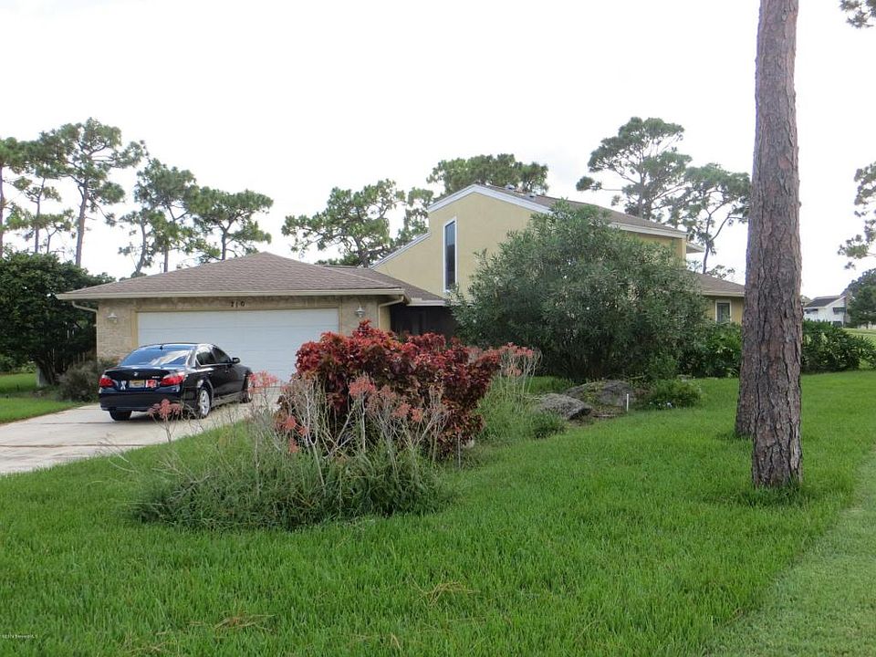 Nice home with great potential. Homeowner began renovations but was unable to finish. Suntree private golf course in back yard. Home needs appliances, paint, carpet and some TLC. Large .33 acre lot. Huge patio. Some creative ideas can make this one a Gem. Good price with great potential.