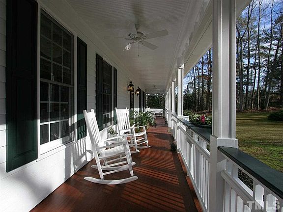 Incredible find! One-of-a-kind beautiful low-country-style home on over six acres inside the Apex city limits! City water and sewer. Walking distance to elem school and Kelly Road Park. Horses allowed. Wraparound front porch. Screened porch and large deck overlook wooded backyard. Yard is partially cleared and partially fenced. Two-story living room with stone fireplace. Large kitchen with granite countertops. Formal dining room and breakfast room. First floor master. Large bonus room. Immaculately kept.
