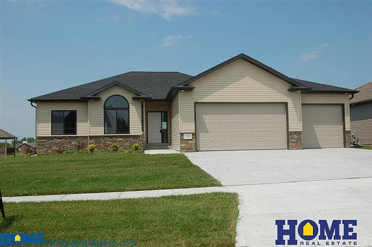 The Jonah by Lewis Homes. Ranch plan on walkout lot with stepless entry from garage. Natural stone & vinyl exterior with recessed soffit lighting. Front entry door with glass sidelights welcome you into the home. The open floor plan features a cathedral ceiling in the great room, and a gorgeous kitchen with maple cabinets, crown molding, appliances, elevated breakfast bar and pantry. Convenient first-floor laundry, panel doors thruout, with coffered ceiling in spacious master bedroom. Master bath features large vanity with double sinks and expansive walk-in closet. Spectacular view off cedar deck with black iron railing. Full basement ready for finish with 2 more legal bedrooms, full bath and large family room for $19,000. Anderson windows, full sod and underground sprinklers.