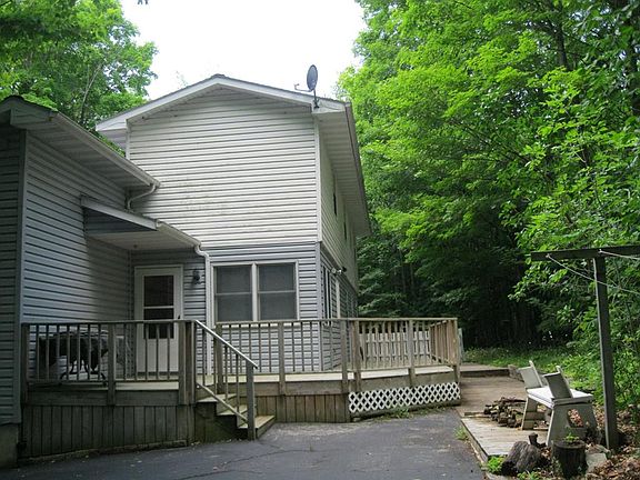 Lot size--Lot is split by Deer Trail Rd. The approximate size of the lot where home is located is 390' x 354'. The other portion of lot is approximately 390'x 206'. There is also some electric baseboard registers available as many of them have not been disconnected. There is a deck in the back of the home. Also the back portion of the lot is heavily wooded. The kitchen was added on a few years ago and generous in size. The small unattached garage has a roof about 1 yr. old as well as a new garage door. The furnace is about 3-4 yrs old. Large kitchen with dining area. Also dining area as part of the living room. Fireplace with heatilator in living room. Large laundry on first floor. Lots of room to stretch.