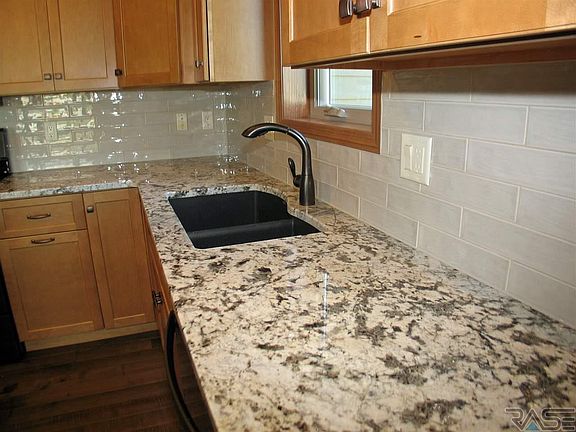 Enjoy east side living in the new Copper Creek Heights neighborhood in Sioux Falls. Minutes from the Dawley Farm Village shops, movie theater, restaurants, and the Willow Run Golf Course, this custom designed ranch home features an open layout with 9' ceilings, main level laundry, and mudroom with bench, lockers, and cabinets for storage and organization. The heart of this home is the great room with the ability to easily host family gatherings and entertain. The kitchen includes Brazilian Sienna White granite countertops, custom tile backsplash, and Maple cabinets finished in Oregano. 4" wide Maple hardwood floors run through the dining room, kitchen and hallways. Your living room reaches up to 10' in height and includes large windows for increased natural light. Your master suite also includes a 10' tray ceiling, large WIC, double vanity sink with Bellavita Canterra tile, and Wooow fabric-inspired Linum custom tile surround tub/shower. Landscaped yard and sprinklers included.