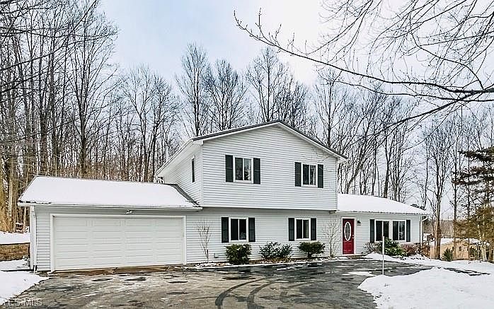 Welcome home to this Kirtland 4 bedroom colonial plus office. It's gleaming with pride of ownership and attention to detail. Full bath and bedroom on first floor for your convenience. Upstairs bedroom being used as the master has newer carpet. Updated kitchen with floor to ceiling natural hickory cabinets will provide extra storage for your cooking needs. All appliances stay, front load washer 2019, refurbished boiler with expansion tank (2019). Newer french doors lead to large deck and private back yard with woods, and trail. Newer outbuilding features loft storage and metal roof. The exterior of the house has newer siding, windows, doors (2008), retaining wall (2018), and metal roof (2017) making for low maintenance. Very clean and pleasure to show. Location, location, location!