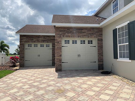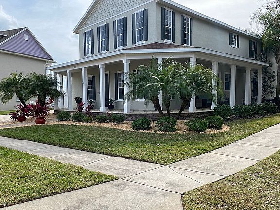 Four bedroom, 3 bath, golf course pool home in beautiful Harmony, Florida community. One of only 7 properties directly on the golf course. Stone finished two stall garage with polyaspartic finished flooring, and a wrap round front porch. Hardwood ceramic flooring, and marble limestone floor entrance on first floor, and carpeting on second floor. Large two story foyer entrance, en suit large balcony overlooking pool and golf course, his and her vanities and shower heads, large paver deck around heater/chiller saltwater pool, wet bar with floating shelves, stacked stone outdoor summer kitchen with commercial grade gas grill, sink, fenced in back yard with irrigation system. Energy Star standards. 350 gallon buried propane tank to offset electricity bill and built in whole house generator. Custom landscaping in the front and back with Queen Palms overlooking golf course. Walk to K-12 schools. Community provides boats and a dock master, playgrounds, walking trails, boat/RV storage, and garden plot